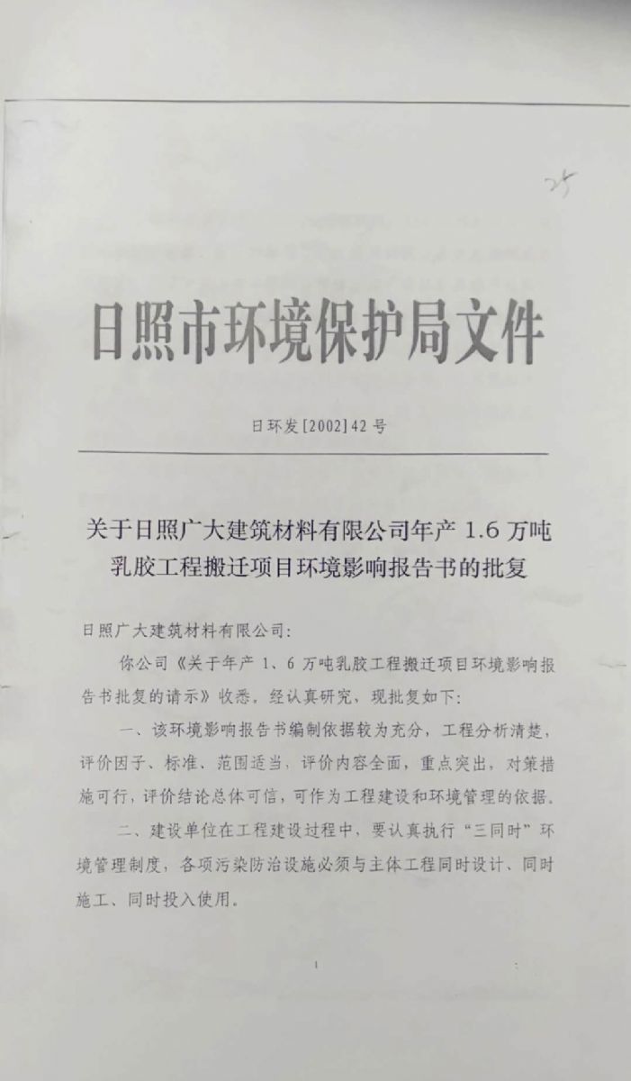 日照廣大建筑材料有限公司,位于風(fēng)景秀麗的海濱城市山東日照,成立于1988年,是專業(yè)生產(chǎn)高分子化工產(chǎn)品,集科研開(kāi)發(fā)、生產(chǎn)經(jīng)營(yíng)為一體的化工企業(yè),主要產(chǎn)品為丙烯酸脂類乳液和丁苯膠乳。是國(guó)內(nèi)目前江北同行業(yè)產(chǎn)銷量最大企業(yè)之一。