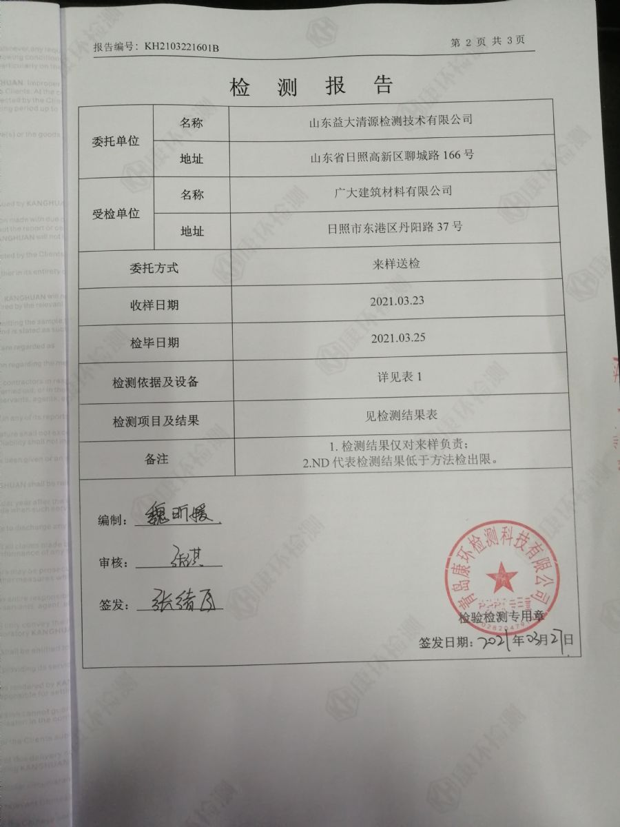日照廣大建筑材料有限公司2021年第一季度環(huán)境信息公開